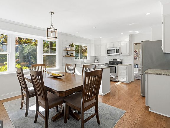 Set on a picturesque, tree-lined street, this beautifully updated home blends comfort and modern design with quality craftsmanship throughout. The main level features new hardwood floors and detailed millwork, adding character and a polished finish to each space. The updated kitchen includes stainless steel appliances, a sunlit picture window overlooking the backyard, and an inviting eat-in area ideal for casual dining. The formal living room offers elegant built-ins that provide both display and storage space, while the dining room is perfectly sized for gatherings. A spacious great room with a bay window and wood-burning fireplace creates a comfortable setting for everyday living. This light-filled space opens to a screened-in porch that leads to a paver patio, perfect for outdoor dining and enjoying the large, level backyard. A stylish half bath completes the first floor. Upstairs, all bedrooms feature hardwood floors. The generous primary suite offers a tranquil retreat with a dressing area, walk-in closet, and ensuite bath. Three additional bedrooms share a well-appointed hall bath. The bright, newly finished basement with recessed lighting offers flexible space currently used as an office, workout area, and playroom, along with a large unfinished section for storage or future expansion. High-end fixtures and finishes throughout complement the home’s modern updates and cohesive design. Recent improvements include new doors and windows, a new HVAC system, and a whole-home reverse osmosis system. Enjoy convenient access to I-95, Philadelphia, Princeton, and NYC, all while taking in the charm and character of Yardley and Bucks County living. The area offers a variety of local restaurants, shopping, and recreational opportunities, from scenic walks along the Delaware River to nearby parks and community events. All of this comes alongside the highly rated Pennsbury School District.