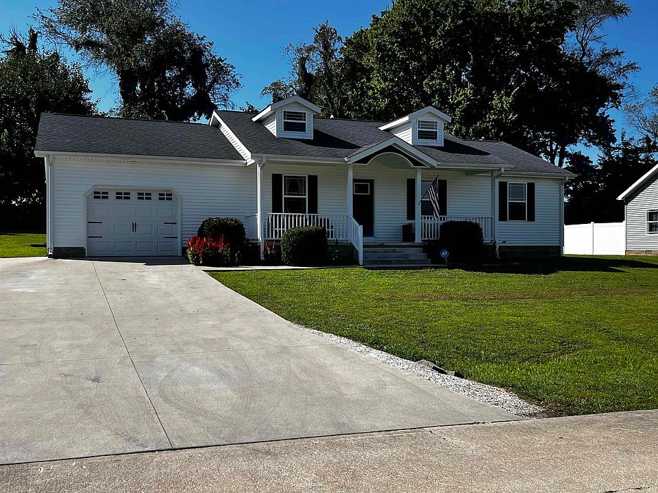 Nestled in a quiet subdivision this one story home includes many features. Walk up to the inviting front porch where you can enjoy friends and family. Walk into the front door into an open concept with living room, dining room, and kitchen with island. This home also features 3 spacious bedrooms and 2 bathrooms. Out the back door you will step out onto the back deck where you will find a large back yard and fire pit to enjoy during the cool Fall evenings. The attached garage is large enough for storage as well. You will also notice that every room has a fresh and clean coat of paint and new vanity in the hall bathroom
