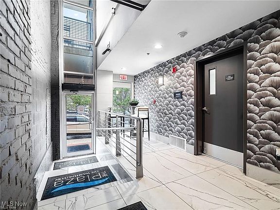 Floating among Downtown Cleveland's iconic skyline, this is the definition of luxury living. Exquisite Penthouse 1203 offers two bedrooms, two full baths, additional loft space, modern finishes. The floor-to-ceiling windows in the two-story living area showcase spectacular views of the water, bridges, and city which are absolutely breathtaking. Impressive features include two deeded garage parking spaces, two outdoor spaces (private balcony on the first level & private deck upstairs), in-unit laundry. The first level boasts sleek flooring, bedroom w/ walk-in closet, full bath, dining & living rooms, laundry room. The gorgeous kitchen has stainless appliances, granite counters, breakfast bar, backsplash, warm colored cabinetry. Upstairs you'll find a spacious loft and generously sized deck which makes this the perfect place for entertaining or relaxing! The primary suite presents three closets and an en suite bath with double sinks and tiled walk-in shower. The Plaza on Washington is a secure building with on-site concierge & security, workout rooms, and access to the viaduct to take in the beautiful skyline view, to walk your dog, or head to Casa La Luna for a bite to eat. Excellent location, just minutes to Downtown Cleveland and Ohio City. This condominium is priced to sell!