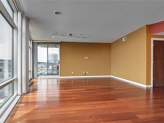 Enjoy the stunning views of the Lake and City through your floor-to-ceiling windows and on your large private balcony. Located directly across the river from the East Bank of the Flats, this building is set in a prime location next to Ohio City, and just across the bridge from all of the hotspots in downtown Cleveland. This 2-bedroom, 2-bath condominium comes with an attached parking garage space. The Unit will be freshly painted in a light modern hue. It includes beautiful hardwood flooring in the main living area, in-suite laundry, and modern lighting throughout. The kitchen features granite countertops, ample cupboard space and stainless steel appliances. A new French door refrigerator will soon be added. The bathrooms offer a large walk-in shower and soaking tub, perfect for a relaxing evening. The building has on-site staff and security, secure access, well maintained lobby & common areas, a workout room, and viaduct access off of the 8th floor with chairs & grills to entertain. Move-in ready opportunity in bustling Cleveland! Owner pays for water and sewer. Renter responsible for electric. No smoking allowed. Up to two small pets permitted, under 30 lbs. and a pet deposit is required.