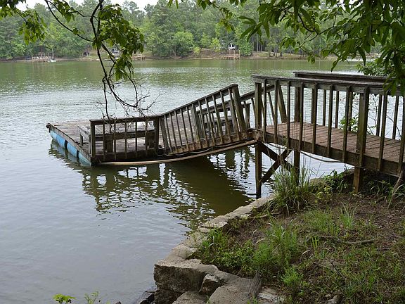 A-frame, chalet-style home with a dock, boat lift with deep water and boat ramp. Home features 2 beds and 2 bathrooms. large screened porch and deck. 3 year old roof. Carport and garage. Home is fully out of the flood plain.