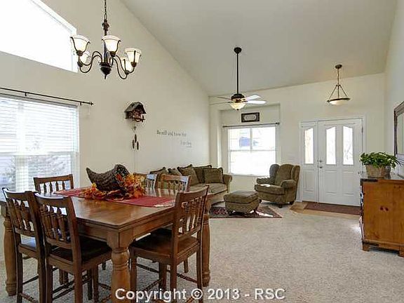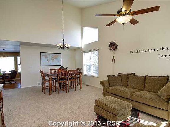 This beautiful home starts with a covered front porch that opens to an inviting formal living room/dining room combo. The large family room features a gas fireplace and walkout to the huge concrete patio also opens to the kitchen. The eat-in kitchen has wood floors, ceramic tile counters, an island, a pantry, and includes all appliances. The upper level is where you will find the master suite with a fireplace, adjoining five piece bath and walk-in closet. This level also includes three additional bedrooms and a full bath. The lower level features the recreation room, two additional bedrooms, and full bath. All this located in the desirable Woodmen Hills community with two recreation centers that have indoor and outdoor pools as well as fitness centers.