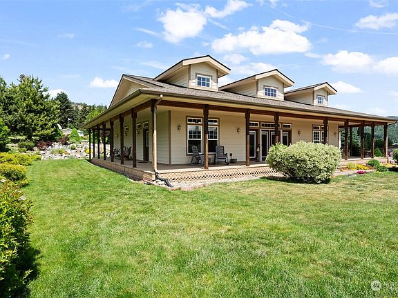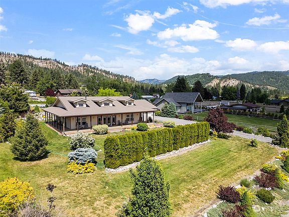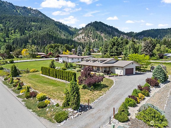 Stunning, spacious rambler in one of Leavenworth's most sought-after locations! Situated on a sprawling 1-acre lot, this property is fully landscaped, offering tranquility & privacy with room to expand, install a pool, or hone in your gardening skills! The wrap-around porch boasts panoramic mountain views, a sight that will never fail to inspire. The large pond adds a touch of serenity to the landscape, inviting you to unwind, enjoy the peaceful ambiance or evolve this pond to suit your needs! Inside, the home welcomes you with generously sized rooms & open layout, ideal for both relaxation & entertainment. Equipped with RV parking, breathtaking views & endless possibilities for customization, this rare opportunity that won't last long!