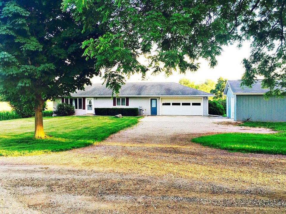 IMMEDIATE OCCUPANCY! Now it's your turn to call this 3 BR, 1 B ranch on 2 acres home. French doors lead you from the spacious living room to the combination kitchen/dining area with breakfast bar. Bath tastefully updated in 2016. Freshly carpeted, finished walk-out basement has a family room and a "flex space" just right for a home office, workout room, or kids' play area. Two wood pellet stoves keep heating costs low. The 2 car attached garage has a concrete approach and there's an insulated 24 x 28 detached pole barn with concrete floor and separate electric service for added storage, a workshop, or perhaps to create your own man OR woman cave! New electric panel installed, well repaired and chlorinated in 2016.8294