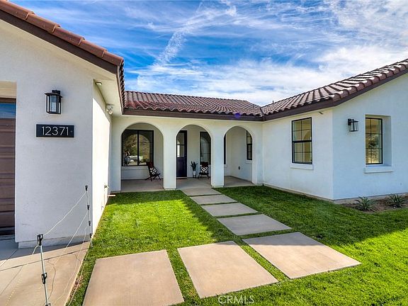 Brand New Construction! Come check out this brand new Spanish/Modern home situated on over an acre lot in Reche Canyon. Step through the front arches onto the covered porch. Once inside one will find wood plank stye tile floors throughout the home. The kitchen is open to the family room and boasts a large island with quartz counters and stainless steel appliances. Walk down a private hallway to the primary suite with vaulted ceilings and an 8 ft glass slider. The primary bathroom is a large en-suite with a huge tiled shower and large soaking tub along with his and hers closets and sinks. The other side of the home features a bedroom with a full hall bath and two more bedrooms with a Jack n Jill bath. The laundry room also features an exterior entrance. The home has solar, tempered glass windows, a tankless water heater and is bright and airy with canned lighting. You won't want to miss out on this gorgeous home. Come check it out, this will not last!