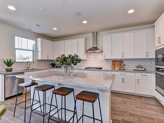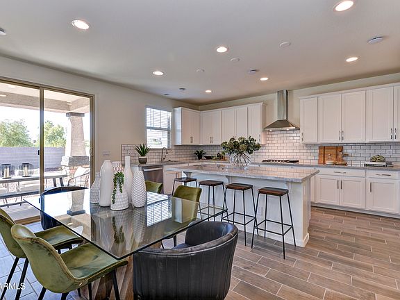The Arlington plan features an expansive kitchen area with large island overlooking the great room and expanded covered patio. This home features a gourmet kitchen, upgraded cabinetry with 42'' uppers, granite countertops in the kitchen, custom kitchen backsplash, upgraded flooring, stainless steel appliances, 9 foot ceilings, downstairs bedroom and much more. Come see today!