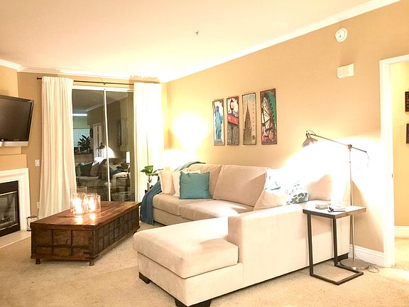 Beautifully appointed 2 bedroom, 2 full bath condo. Kitchen opens up to living area. Granite counter tops and stainless steel appliances. His and hers sinks in big bathrooms. Bedrooms separated by living room with fireplace. Balcony. Washer/dryer included. One car garage + assigned space. Gated complex. Community pool and spa. Clubhouse. Mention Carmel Country when calling agent 760.445.4240. Water trash sewer included in rent