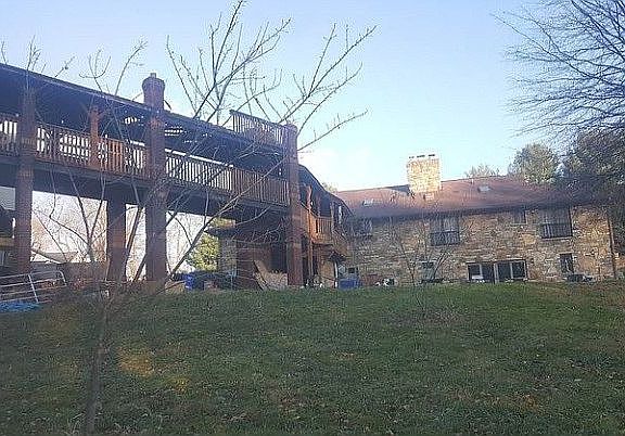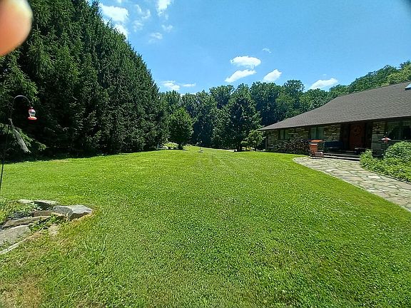 Stone house for sale one of a kind! TWO lots, 1- 1/2 acres each, 5 skylights, 4 bed, 4 bath. Marble floor in kitchen with large island and breakfast bar, plenty of storage space in kitchen. 3 bathrooms. Wood burning fire place in living room and basement. Jacuzzi in master with double sinks and separte stand up shower. Two walk in closets in master. Large Garage, Second Garage attached with deck has 3 bed 2 bath apartment/inlaw suite & bathroom in garage below. Large fenced yard, with stream in back and beautiful scenery.