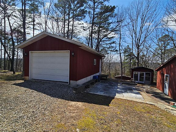 This rustic cabin is located in the gated community of Grayhawk. If you enjoy fishing or just relaxing in the country, this home is for you! 2 bedroom, 2 bath with a woodburning fireplace. Updated electric panels and 2 water heaters. There is a 2 car detached garage that has electric. There is also another outbuilding with electric, perfect for a workshop or additional storage. This home also features an outdoor smoker room. The smoker room has a built in BBQ with exhaust fan, electric, and water. Grayhawk features nearly 200 acres of stocked lakes and is in the heart of Missouri wine country.
