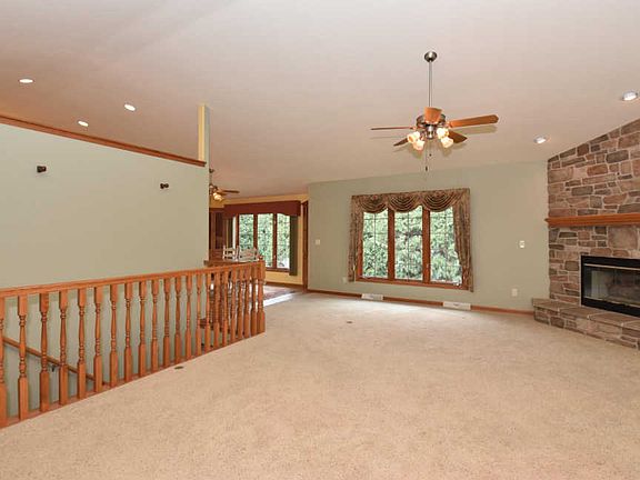 Breathtaking home with all the amenities perfect for entertaining w/ efficient flowing floor plan. Kit. features beautiful tile work, island, and tons of meal prep and storage space! Glorious LR accented by a wonderful stone fireplace, vaulted ceilings. Spacious MBR suite! Updated modern color decor in bedrooms! You'll be blown away by the professionally finished rec room that has partial exposure. The LL features a 4th BR with 3 egress windows, bath & kitchenette, gas FP & game room. Main L laundry with Bosch washer and dryer. Hawks gorgeous landscaping with sprinkler system. This home has it all! Highly sought after Greenfield school district location has a small neighborhood park feel. 72 gal. hot water heater. Lennox Recovery Ventilator, cenral vac & security systems.