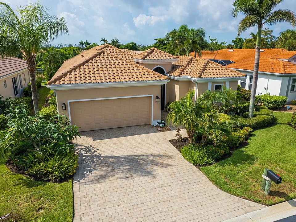 This exceptional single-family home includes a boat slip complete with a 20,000 lb. boat lift in the marina - no bridges, easy access to the open gulf waters. The slip will accommodate up to a 36' boat. The riverfront community offers a tranquil environment, great for walking, and neighborhood activities. This courtyard home boasts 2 bedrooms/2 full baths in the main house while a separate one bedroom/full bath cabana by the pool adds to the uniqueness and charm of the home. Enjoy the canal view from your living area or the open patio. Tray ceilings throughout, lots of storage and a 2 car garage. 2018 they replaced the roof, a/c, pool enclosure screen and entryway screen door. Exterior of the home was freshly painted in the spring 2023. Meticulously maintained. The community offers tennis, pickle ball, community center, pool and spa, picnic island and one of the best private marinas in the area. Conveniently located near shopping, dining and minutes to the beaches. Being offered turnkey, just bring your beach towels!