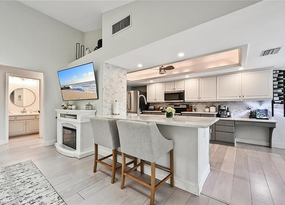 MCGREGOR "WOODS" with its pristine Old Florida Vegetation. UPON ENTERING THE DEED RESTRICTED COMMUNITY, you are greeted by mature trees and a magnificent view of the on water Gazebo, TENNIS, PICKELBALL, COMMUNITY POOL, SPA & fishing pier. 4 bedroom, 3 bathroom, 2 car garage single family home open-floorplan-home with high ceilings, stunning view of our lake from most of the house. Living room with formal dining area, large eat-in-kitchen, family room, laundry room with utility sink and powder room/bathroom. There is its own a/c system for that part of the house. The other a/c system covers the side of the house with 4 bedrooms and two full bathrooms. The drive way is paved. Well water- Irrigation. Patio under truss, plenty of seating for outdoor grilling/ entertaining, and build your own pool/spa & room for a dock for coffee, or wine! Designer Renovation Act Fast this home is PERFECTION McGregor Woods is a beautifully vegetated, active community with tennis & pickle ball, ideally located within biking distance to Bunche Beach and minutes to the Sanibel Cswy! You have found your new piece of paradise...welcome HOME! New roof & 1 new AC 2022 the other works perfectly!