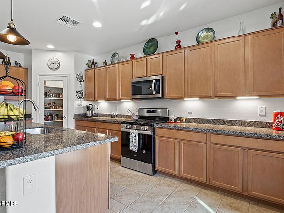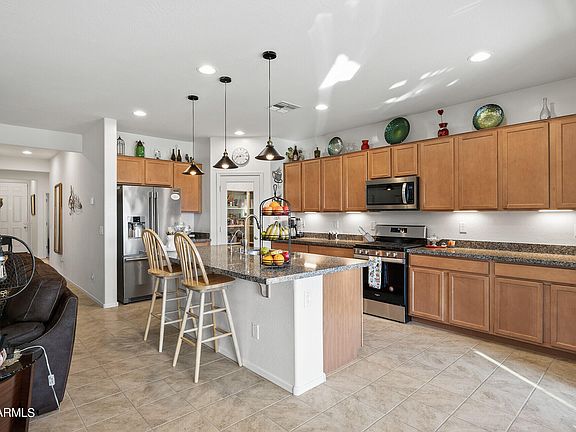 Discover perfection in this like-new haven! A Spacious Great Room leads to a dream kitchen with French Door Refrigerator, walk-in pantry, 5 burner gas range and large island. Bask in the sunshine in your dining nook. Three bedrooms and two baths offer ideal family comfort. Relaxing primary bedroom with a spacious walk-in closet, double sinks, a shower, and a separate soaking tub—a true retreat. Step into the tranquil backyard—a peaceful oasis of greenery. Features a drop zone off the entry from the 2-car garage, a laundry room with plumbing for a sink. Pride of ownership shines in this great Avondale location with walking trailers and playground. Security system, fridge, washer/dryer, water softener & RO system included. Don't miss your chance to make it your own!