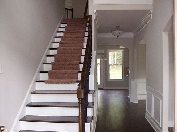 Waterpointe Subdivision, the best kept secret in the Panhandle area of Clayton County. Borders the 250 acre J.W.Smith Reservoir. The Beautiful Oconee has a 2 story Foyer entrance, 2 story Great Room with windows galore allowing an abundance of natural lighting. Formal Dining Room with Trey Ceiling, Formal Living Room both with Double crown molding & Judges paneling. Guest Room on Main level. Stunning wrought iron staircase leading to secondary bedrooms, hallway full bath. Overlook into Great Room below. Grand Master Suite with sitting area, trey ceiling, double crown molding. Master Bath with double vanities, garden tub with tile surround, separate tiled shower, seamless glass shower door. Large Master Closet.