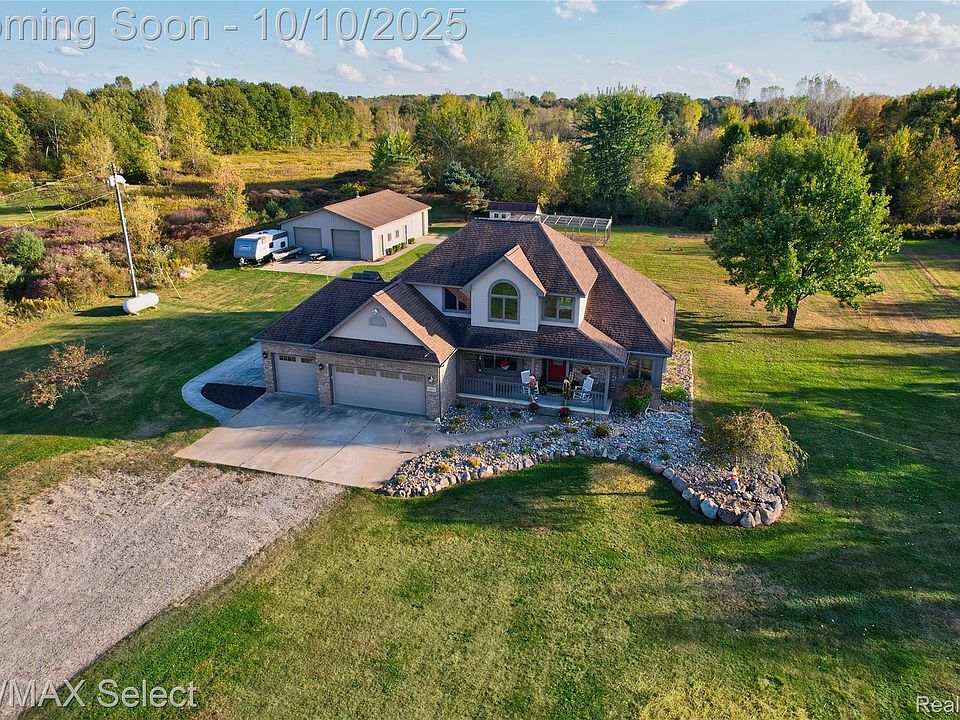 Welcome to this immaculate 3-bedroom, 2.5-bath home offering 2,115 sq. ft. of thoughtfully designed living space surrounded by 15.2 acres of peaceful country living, located in the Swartz Creek School District. Step inside to soaring cathedral ceilings and expansive windows that fill the home with natural light. The kitchen features oak cabinetry, stainless steel appliances, and a large island perfect for entertaining. It opens to a cozy breakfast nook with access to a spacious deck overlooking the scenic backyard. Gorgeous hardwood floors flow through the kitchen and formal dining area, adding warmth and character throughout. The first-floor primary suite provides the ultimate retreat with a private deck, dual sinks, a jetted tub, walk-in shower, and a generous walk-in closet. Convenient main-level laundry and a half bath add to the functionality of this home. Upstairs, you’ll find two additional bedrooms, a full bath, and an open loft area—perfect for a home office or reading nook. The basement features 9-foot ceilings and plumbing for an additional bath, ready for your finishing touches.