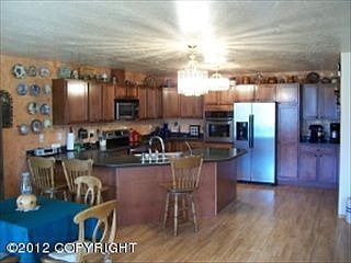 Want to work from home or need a 1200sqft GARAGE, STUDIO, CLASSROOM or GAME ROOM for those winter months? The choice is yours. Nice open living area includes a large kitchen with generous cabinets and eating bar. Easy commuter location just 6 minutes from Parks Highway interchange.Inside RV parking. At this price you can be a snowbird if you desire! Come inside and feel the comfort and charm.
