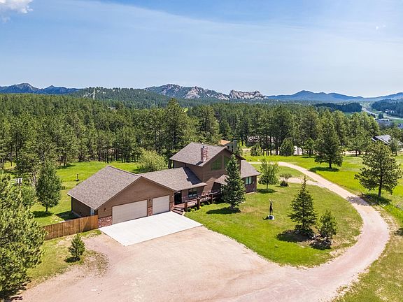 BLACK HILLS HIDDEN GEM! Custom build 4 bedroom/3.5 bath home currently used as a vacation rental, perfectly set on a wonderful spacious lot with no covenants and two RV sites to boot! Exquisite home that’s mesmerizing from top to bottom, on almost 4 pine-dotted acres! Chef's delight kitchen with plenty of black granite countertops, center island with cooktop, stainless steel appliances, impressive tile backsplash, and striking Acacia Asian walnut hardwood floors extending into the dining room and jaw-dropping great room showcasing a sky high vaulted ceiling, custom log pillars & elk antler railings lining the magnificent staircase, plus a cozy rose quartz fireplace. Ornate French wood doors lead you to an expansive open deck covering 809 sq. ft. & overlooking a spacious fenced backyard. Main floor master suite with full bath highlighting an Italian Travertine tile walk-in shower, jetted tub & heated tile floor. Guest bed featuring more Acacia Asian walnut wood flooring, 1/2 bath & convenient tucked-away main floor laundry. Grandiose loft en suite has its own deck & full bath hosting a tile walk-in shower & heated tile floor. Sprawling basement family room highlighting a custom wet bar with solid slab of ponderosa pine. Root cellar is accessible from the basement laundry room. All Pella windows & doors throughout. Oversized 3-stall garage houses oodles of storage. Garden shed, fenced chicken coop & 2 RV hook-up sites. Come home, put your feet up, and never want to leave!