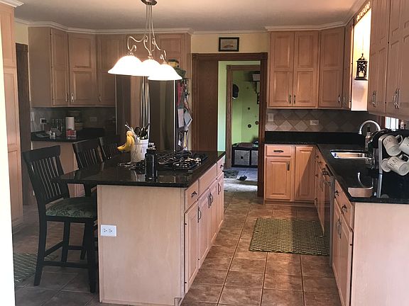 Beautiful country home on acre lot with 3 BR and 3.5 bath. Upper level has master bedroom and bathroom suite, 2 add'l bedrooms, full bathroom, and laundry room. Main level has large kitchen with upgraded appliances and granite counter tops, den/dining room, family room with river rock gas fireplace, and 3-seasons room. Finished basement has Northwoods feel with knotty pine finishes, bar, family room, and full bathroom. Attached garage is 800sq ft (oversized 2 car). Detached garage is 1100 sq feet, heated, and has asphalt driveway access. Paver brick front walkway and back patio. Wireless dog fence. Two new furnaces installed in 2013. New roof in 2013.