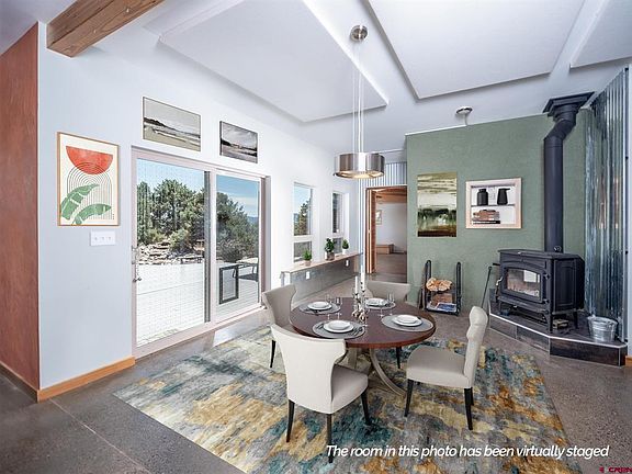 You will be WOW'ed! Just minutes from Mancos this stunning Rick Feeney designed home is fully integrated with the natural surroundings. Shrouded in 50 acres +/- of wooded privacy and yet open to the best of mountain views - the land, the home and it's features are extraordinary! The true chef's kitchen with island and bar seating opens onto great room living and dining space made cozy by the high efficiency Jotul woodstove. Additional kitchen features include durable quartz counters, stainless appliances, vent hood, and pantry. The great room immediately opens onto a large deck with hot tub, great for entertaining and star gazing. The home features high floor to ceiling windows with abundant natural light and situated for maximum passive solar gain in the winter. The master bedroom and bath is on the main level with two additional upstairs bedrooms also featuring ensuite bathrooms. Upstair-access to two additional private balcony's offer awe inspiring views of the LaPlatas, Mesa Verde National Park, and Sleeping Ute Mountain. The surrounding xeriscape gardens are fully fenced with a beautifully designed water feature to enhance the amazing outside experience of the home. Built with sustainable building practices, the home features many green-built elements including a modern solar power system tied into the grid, and environmentally friendly building materials. Outside features includes a geodesic greenhouse designed by Growing Spaces and built on site. This amazing year round structure includes electricity, frost free waterline, 700 gallon water tank (with Koi) and closes or opens itself automatically adjusting the climate as needed. Driveway extends past the greenhouse to an additional shed and metal Quonset style building. Heavily wooded with pinon, juniper, and ponderosa pine, the sellers have enjoyed years of exploring the rolling wooded terrain and canyon located within the property's boundaries.