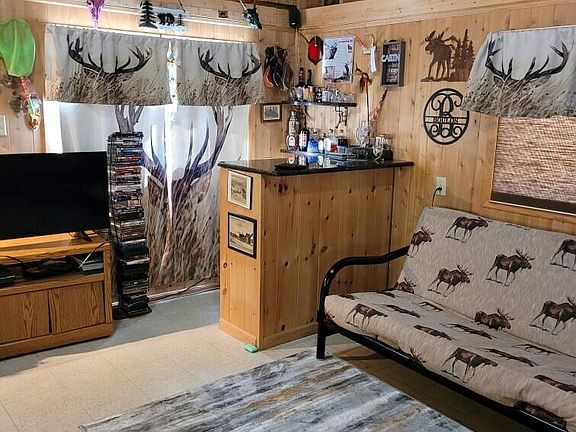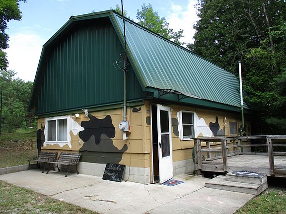 Attention Sportsmen this may be the one you've been waiting for. The famous ''Camo Cabin'' sits on 7 acres with hardwoods and cedar in the back by the creek. The perfect hunting cabin or up-north retreat. The home has 759 square feet with 1 bedroom, 1 full bath and a loft area for sleeping. Cabin was completely remodeled and features an open floor plan with granite countertops in the kitchen, bar area, and bath. Vaulted ceilings and an electric fireplace for that rustic charm. Cedar interior was made with wood from the property. Bathroom has 2 storage closets, wood laminate floor and hot water on demand. Metal Barn style roof for easy maintenance. There is a large deck to sit and enjoy nature. Also a 16 x 12 shed to store all your toys.