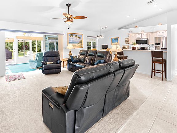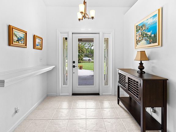Welcome to this extremely well cared for and maintained 4-bedroom, 2-bath home on an oversized 1.15-acre lot in the desirable community of The Acreage. Designed with an open floor plan, split bedrooms, and vaulted ceilings, the home offers comfort and functionality. Inside, you'll find carpet and tile throughout the main living areas, a kitchen with stainless steel appliances, newer countertops, and a dining space perfect for entertaining. Updates include all double-hung insulated low-E windows with screens, a premium roof with 130-mph rated shingles and lifetime warranty (2013), Rheem 4-ton 3-stage A/C with EcoNet SmartHome and 10-year warranty (2024), Bosch Silence Plus dishwasher (2024), Samsung MultiSteam dryer (2025), and a newer (2019) whole-house water system plus newer kitchen RO water system. Additional features include a hurricane impact front door, whole-house hurricane panels, new accordion shutters on the sunroom, Tempo Sunroom with transferable warranty and UV glass, sunroom new (2022) AC split system, house electrical power transfer switch, septic system inspected every 3 years, and a 9-zone irrigation system with new (2024) pump. Outdoors, enjoy a private patio and a large, fenced yard with a private gate, surrounded by Florida native trees with room for a future pool.