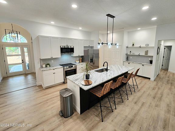 Fantastic Mansion style Home in the Heart of Mandarin! What a location! Stunning full renovation just completed including Custom Stone Island and Tile in the Kitchen, All New Appliances, Custom Designer Tile and New cabinetry in the Bathrooms. Open Concept Living/Dining, All New Lighting, Vaulted Ceilings, Fresh Paint, and Fresh Landscaping. Huge Two Car Garage. Very established neighborhood. Come home to a lush paradise with fully grown Palm Trees, a Screened Patio off the primary and a Rear Patio entertaining area with a gas firepit. Very convenient to all the shopping and dining options you could want. Schedule a tour today!