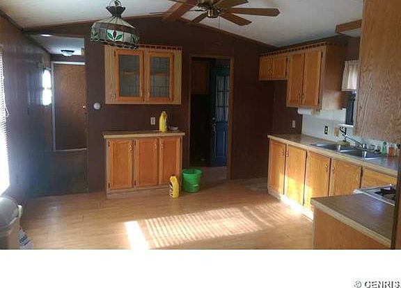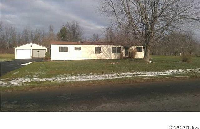 Located on over 6 country acres. minutes from town and easy access to 104. This 2 bedroom 1.5 bath home has so much to offer. Eat In Kitchen, master bath, Large living room, Blacktop driveway, Huge garage large patio. a little TLC you have a great home..