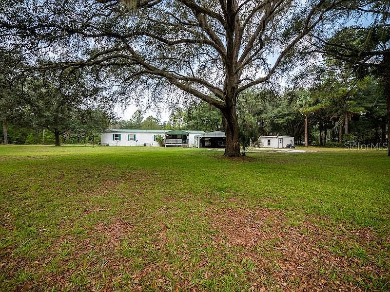10 high and dry acres on paved road with Cross Florida Greenway close by and the beautiful Ocklawaha River. 1998 Manufactured home is 28'x76' includes 4 bedrooms, 3 bathrooms and 2112 living square feet. The home includes a metal roof and 15'x16' covered front deck prefect for watching the birds and squirrels with your morning coffer or tea. Home features living and family room, dining area and breakfast bar area in kitchen. Kitchen has lots of cabinets, counter space, island and all appliances are included. Main bedroom is spacious in size with large walk in closet and double doors leading to large bathroom including shower, privacy toilet and lots of cabinets. Additional bathrooms include tub/shower combos and some updates. Bedrooms are cozy in size and all half 1/2 walk in closets. Inside laundry room with more cabinets and storage. Outside is 23'x23' metal carport to park vehicles or toys. Also a 12'x30' workshop with power. Located short drive to downtown Fort McCoy with grocery store, doctor office, pharmacy, hardware, gas station, pizza delivery and more. Close to Silver Springs which is great for kayaking, boating and outdoor activities. Ocala is just another 20 minutes away with Walmart, Lowes, Bealls, Outback and many more of your favorite shopping and restaurants. Gainesville(Home of Florida Gators) is only 50 minutes to downtown. If you’re a fisherman, hunter or simply love hiking, canoeing or kayaking you are in luck! Minutes to Ocklawaha River boat ramp, Rodman Reservoir boat ramp, Ocala National Forest and many natural springs(Salt Springs, Silver Glen Springs, Juniper Springs), horseback and walking trails, and off road vehicle trails awaits your explorations. One of a kind property and location! Ready for new owners!