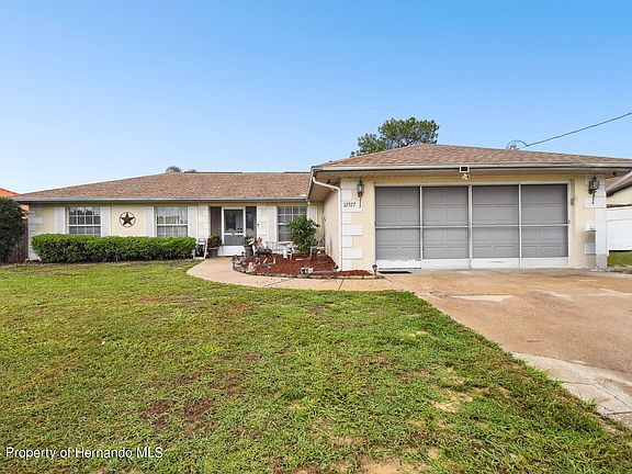 PRICE DROP POOL HOME! Spring Hill just got even more desirable with a price reduction of $15,000 to purchase at $315,000., this savings is yours to use toward any upgrades to make it truly yours! A three-bedroom, two-bathroom home, packed with desirable features and recent upgrades, including a new roof and drain field from 2022. The property boasts a spacious living area with cathedral ceilings and dining room upon entering the expansive double front entry doors. A two-car garage with sliding screen panels, and having heated bathrooms. The large kitchen offers ample space and dining with black stainless steel appliances and there's an additional formal dining room upon entry that can be used as extra living space. The kitchen has a gorgeous bay window and door which leads right out to the pool. Off the living room is a versatile room that can serve as an office, extra bedroom, or homeschool space. The primary suite has a large footprint with a full bathroom and dual vanity. The property is fenced in, providing a safe and private yard for you and your pets or spending time in the pool. You'll also enjoy an in-ground pool with a screened enclosure and a large outdoor entertainment area that is covered to keep you dry, perfect for enjoying Florida's beautiful weather.