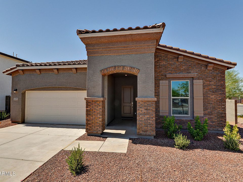 Final opportunities at Del Rio! Quick move-in home - The single-story McDowell is located in the heart of the community and offers a formal entry and hall with a tray ceiling, creating a welcoming atmosphere for your guests. Create gourmet recipes in your upgraded, centrally located kitchen that opens to a great room for you and your family to enjoy. Additional highlights include a soft water loop with drain, quartz countertops.