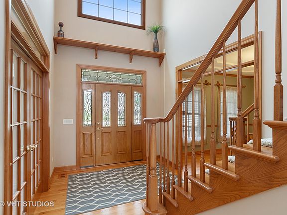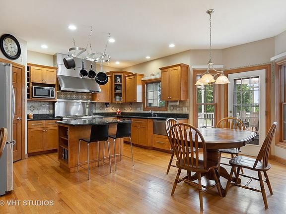 Custom built 4400 sq ft beauty in Yorkville School District with bright and light floorplan is perfect for an active family! Move in ready home includes a first floor bedroom with en-suite bath for guests, in-law suite or home office. Need a garage for your RV or other toys? It's got that, too! Volume entry with beautiful staircase welcomes you home. Bright and light floorplan. Large living room stuns with modern floor to ceiling stone wood burning fireplace. Elegant hardwood floors throughout, custom molding, and abundant Anderson windows that let in natural light and look out on the large, professionally landscaped 1.25 acre lot, volleyball court, pool deck and more. Gourmet kitchen for your inner chef features professional 6 burner gas range, double oven and grill. Pot rack over center island, bar seating, granite counter tops, stainless steel appliances, eat in area, 2 dishwashers, walk in pantry and plentiful storage. Enjoy your meals in the eating area or in the adjacent dining room featuring a double tray ceiling. Take one of 2 beautiful staircases to the 4 upstairs bedrooms. Princess suite, bedrooms 3 and 4 feature adorable Jack and Jill bath. Restful master suite features trey ceiling, spa tub, separate shower, double vanity and spacious walk-in closet. Oversized laundry room upstairs for your convenience. First floor mudroom with bead board cubbies and a closet. Basement features include wet bar, fitness room, arts and crafts room, home theatre and rec room. Oversized 4 car garage - AMAZING! Also huge 40 ft. outbuilding for RV/boat storage featuring 13 ft doors with electric. Enjoy your outdoor activities year round with beach volleyball court, pool, deck, fire pit, professional landscaping, room for gardening, enclosed hot tub--what more could an active family want? Welcome Home!