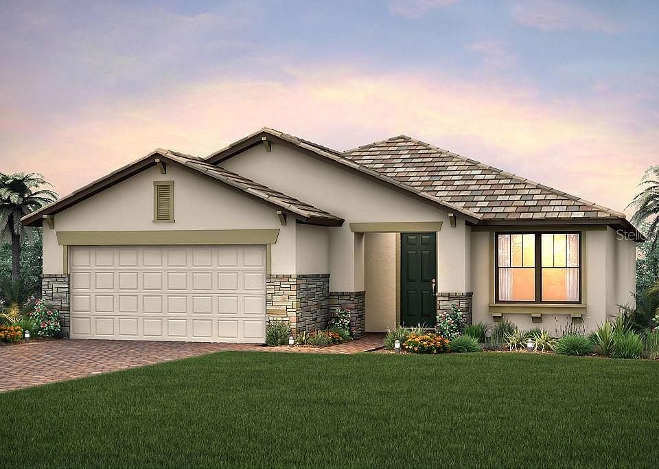 Under Construction. This Martin Ray home features a decorative glass front door, built-in stainless gas appliances & kitchen cabinets, polished quartz counters, tile floors in main living, extended lanai & more! ***Similar model pictures shown are for illustrated purposes only, options may vary.