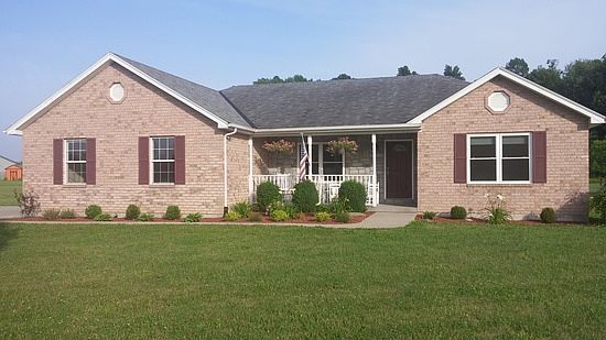 Gorgeous inside and out! Like new brick ranch on flat 2 ac lot. Awesome bamboo flrs, stunning stone FP & Cath ceilings, Eat-in kit w/white cabinets & island,New Champion windows & custom shades,new vanities & flooring in baths.Huge full w/0 bsmt,5min-I-74!