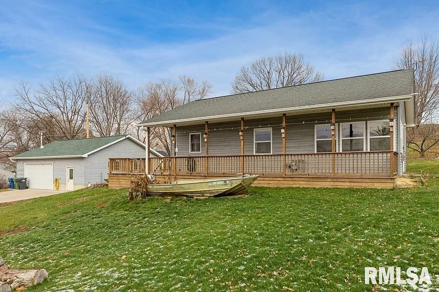 2 Bedroom 1 bath Ranch home on a large corner lot. The kitchen has oak cabinets with ample counter space and bar stools for additional seating. The open and airy floor plan offers a lot of natural light. Master bedroom has a private access to the full bath and laundry. There's a large 2 1/2 car garage with a workbench, half bath and hookup for appliances. Garage has a half bath, sink and is set-up for a gas furnace and a kitchen area. Small shed for additional storage. Several updates over the past few years. House is 1 parcel and the additional lot is a separate parcel. Each parcel measuring 50x127.