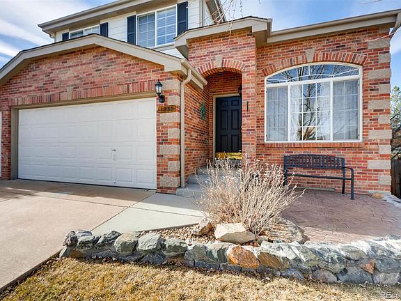 Charming and well cared for 4 bed, 4 bath, 2 story brick home with 3 car garage in Castle Pines. Stroll in and be welcomed by a delightful living room & dining room with vaulted ceilings and pristine hardwood floors in kitchen and living room. Begin making memories & gourmet meals in your well appointed kitchen with gas stove, granite tile counters, white cabinets and newer stainless steel appliances. Take time to relax as you cozy by one of your 3 fireplaces. Whole house speakers with audio control wired and ready to go! The main floor laundry room is large and features a utility sink and cabinets for storage. Up stairs, you will find a master retreat, complete w/ 5 piece master bath, tile floors/ counters, a walk in California closet and your very own fireplace and reading space or office area. Need fresh air? Journey thru the sliding doors to your private deck with amazing views of the entire front range and stars that go on forever! Want more space? Escape to the fully finished basement with a bedroom, full bath, storage, crawl space access, built in shelving, fireplace and lots of natural light. The backyard features a concrete patio, an abundance of large trees for privacy, professionally stamped concrete walkway, grass and perennial flowers and shrubs with outdoor sitting space with power. New high impact resistance roof with lifetime warranty, newer concrete driveway, newer AC Unit and water heater. Experience life in Tapestry Hills where the setting is closer to the stars in quiet place with peace of mind living. All offers welcome!