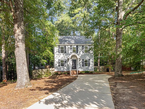 NEW PRICE! AND NEW INTERIOR PAINT! Culdesac! Amazing location! First floor owners' suite! This colonial 3 bedroom, 2.5 bath home is in the heart of Wake Forest! Enter into a large family room with gas log fireplace that opens up to a dining room /kitchen combination. The kitchen includes stainless steel appliances. The first floor includes the owner's suite with ceiling fan, large walk in closet and ensuite with dual vanities and large jetted tub/shower combination. Upstairs you'll find 2 large, additional bedrooms and full bathroom, along with some unfinished attic space. Enjoy sitting in the shade on the deck. Fenced in yard, largely wooded, low maintenance, in culdesac. You are just minutes from shops and restaurants in both the historic downtown and popular Rogers Road areas!