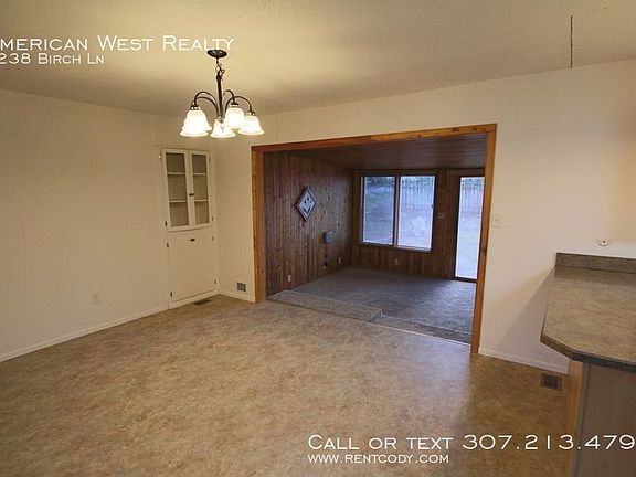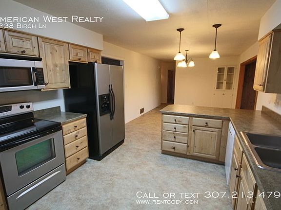 This home features over 1,900 sq.ft. in a desirable, established community. Master bedroom has dual closets and attached 3/4 bath (shower, no tub). Hallway has two more bedrooms, a full bath, and two storage closets. Renovated kitchen with steel appliances including fridge, stove, dishwasher and mounted microwave. Washer/dryer hookups in the laundry area. Bonus room in back with a room that could serve as 4th bedroom or as an office. Fully fenced back yard with automatic sprinkler system. Attached one-car garage with opener. Priced below market so don't wait! All leases are subject to a monthly $20 Resident Benefits Package. You can review the benefits under TENANT RESOURCES APPLICATION AND RENTING POLICY or contact the office for more information. _____________________ Information presented is deemed reliable, but is not warranted. Interested parties are responsible for conducting their own inspection to confirm the accuracy, completeness, currency, and status of all information before renting any property. _____________________ General requirements: All occupants 18+ must complete an application $30 application fee per person Submit a government-issued picture ID Prove combined income of 3x monthly rent To see our most updated list of rentals or learn more about our screening process, visit the American West Realty and Management website. _____________________ INVESTORS: are you looking for professional property management or an agent that can help you sell or expand your investment portfolio? Contact American West Realty and Management today to learn about our services! Ceiling Fan Fencing Fully Fenced Garage Heat Forced Air Heat Gas Fireplace Kitchen Dishwasher Kitchen Garbage Disposal Kitchen Microwave Kitchen Refrigerator Kitchen Stove / Oven Sprinklers Automatic Utility Black Hills Energy Utility City Of Cody (Water, Electric, Sewer, Trash) Washer/Dryer Hookups