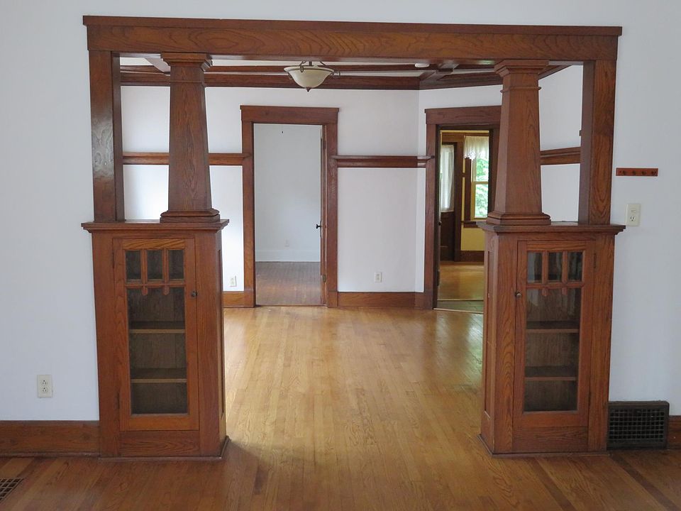 1238 Blaine Ave. This lovely 2+ Bedroom Upper is available for $1150/month. The + is because there is an extra room with glass doors that would make a great office (9 x 10) REQUIREMENTS: 1) Income must be at least 3.5 times rent ($4025) 2) Credit at least 650 3) No housing 4) No pets 5) No evictions 6) Upper tenant must mow the grass and shovel all snow. Bedroom # 1 (13.5 x 9) Bedroom #2 (13 x 10) Hard wood floors and natural woodwork throughout Living Room with built-in bookcases with glass doors (13 x 15) Dining room with built-in buffet with glass doors, plate rail, beamed ceiling (13 x 14) Kitchen has a dishwasher and a nice bank of cupboards (9 x 12) There is a three seasons room off the kitchen it feels like you are sitting among the tree branches! (14 x 7) There is a spacious deck off the front of the unit that faces East which means afternoon shade!! The flat also has central air conditioning. One stall of the garage is included, oh, there is an electric opener!! Month to Month