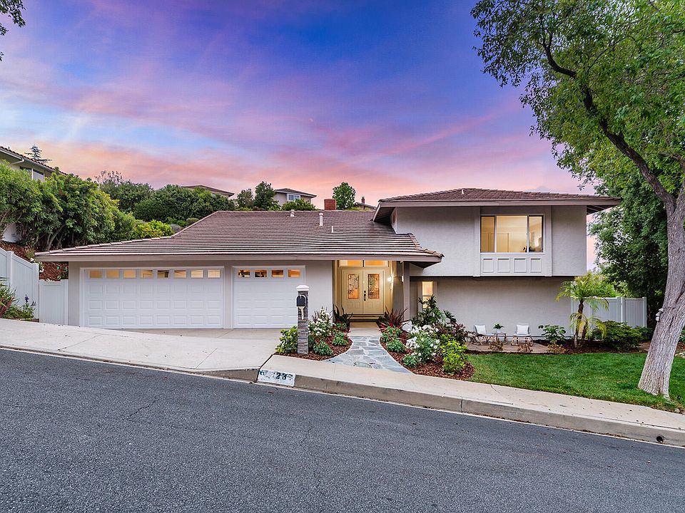 Welcome to Westlake Village's Mid Century Modern Oasis. With summer fast approaching, you won't want to miss the opportunity to host your best pool parties of the season. From the moment you enter the home you will appreciate its architectural clean lines and bright open airy floor plan with expansive windows that overlook the outdoor living space. This home features an oversized game room that opens to the pool area, as well as a spacious guest room on the bottom level. The Primary en suite and 2 other bedrooms are a few short steps up on the top level. Hard wood flooring offers a great contrast to the Light cheerful walls & open ceilings throughout the home. It is situated on a large lot with partial views of the hills and is within close proximity to Shopping & Restaurants in t