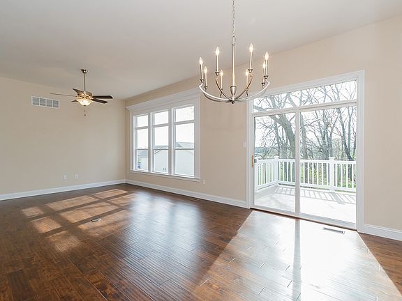 BRAND NEW, low maintenance villa on gorgeous tree lined lot with amazing high end finishes! Enjoy low maintenance luxury at Ohmes Farm, a fantastic neighborhood by Bridgewater Communities, your villa experts. The Clayton model has over 2,450 square feet of finished living space. This popular, 3 Bedroom, 3 Bath design has a Deluxe Kitchen with large center island, Granite counters, stainless steel appliances, smooth top stove, 42 inch cabinets, 10 foot ceilings, recessed lights, custom millwork, 8 foot tall doors, custom paint colors, his and hers raised height vanities, transom windows, hardwood floor in the Entry-Kitchen-Dining Room-Great Room, main floor laundry, walk in closets, 32 inch wide interior door openings, satin nickel door hardware and more. The finished, look out lower level has a large Family-Recreation Room, spacious Bedroom, walk in closet and full bath. Gorgeous elevation with brick and stone, architectural shingles, 2 car garage, coach lights, full sod, landscape, irrigation, 12 X 12 deck and backs to trees. Great location, just minutes from shopping, services, parks and restaurants on Mid Rivers Mall Dr.