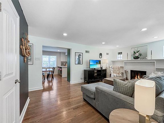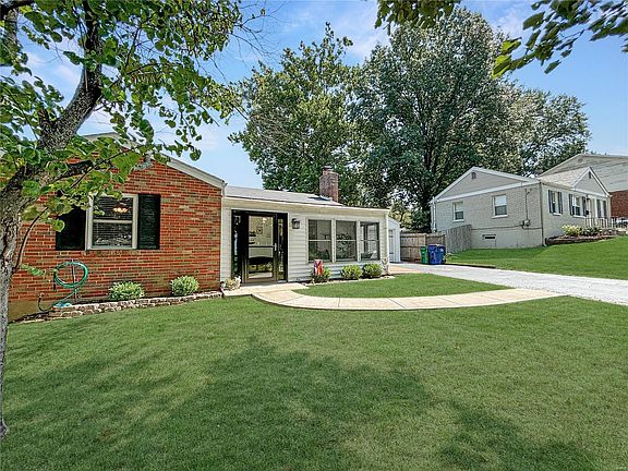 Located in sought after Rock Hill in the Webster Groves School District. This ranch home offers more than 1,200 square feet, surpassing the size of most 2 bedroom, 1 bathroom homes in the area. You are invited into a bright and cheerful entry, ideal for use as an office or relaxing space for a reading room. Next is a living room featuring a wood-burning fireplace, built-in bookshelves, and hardwood flooring. There's no need to buy lamps as this home features ample recessed lighting in the living room and dining/kitchen area. In 2019, the kitchen and dining area underwent a complete renovation featuring stunning cabinets, quartz countertops, and stainless-steel appliances. Adjacent to the kitchen is a versatile breezeway/mudroom that connects to both the garage and a door off the garage to the backyard. When you step into the fenced backyard you will be able to enjoy the spacious patio, level & usable backyard great for gardening plus an outdoor shed to keep all your outdoor supplies. Additional Rooms: Sun Room