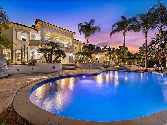 Envision driving down your private cul-de-sac road lined with prestigious homes and entering your long driveway through private gates to be greeted by a romantic water fountain. Your Mediterranean architectural masterpiece lies before you with impressive gardens and a four-car garage. Enter your foyer with 20' ceilings and be dazzled by your sweeping staircase and breathtaking chandelier. Peer through your entry to the formal living room opening to a showcase backyard oasis with infinity-edge pool and spa, marble gazebo, and expansive meandering grounds replete with abundant palms, a distinctive rose bush collection, numerous fruit trees, a putting green, and an outdoor kitchen. This home will be your pride and joy as you entertain your most discerning guests with an impeccably maintained home and chef's kitchen. Watch your favorite sports teams achieve victory in your private game room, complete with pool table, grand bar with seating for 6, and gorgeous games table. Your master suite, a fantasy retreat features a wet bar, vast balcony overlooking your grounds, and exercise room or 2nd office housing your own private sauna. The master bath is sumptuous with dual vanities, 7 head shower, jacuzzi tub, bidet, and a fashionista's dream closet with built-ins. Featuring too many amenities to cover within this brief description, we have included a full features and amenities list in the MLS supplements. Welcome home to Casa Mesa Del Sol.