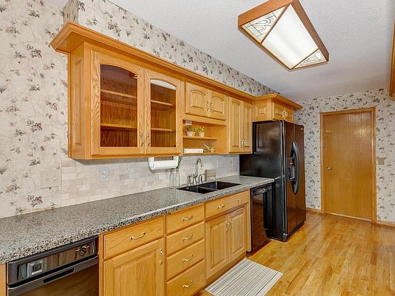 Sprawling spacious ranch on wonderful cul-de-sac that is conveniently close to Derby Marketplace, McConnell, & Wichita. Neutral decor throughout. Note the granite counters & updated premium custom oak cabinetry in kitchen which is wonderful--check out the customized kitchen storage for pots/pans/lid, pull out shelves, silverware, & much more with soft close drawers. Master bath has full tiled shower, basin sink & new cabinetry. Large dedicated laundry allows for much convenience of use with handy half bath. Main floor family room has sliding door to adjoining deck overlooking the large fenced backyard, inground pool with auto cover, & pond with rock waterfall. The basement offers a HUGE rec room with extensive room for games/pool and for media/television, an office that was used previously as a non-conforming sleeping room, a full bathroom that is accessible from both the hall and from the adjoining office/non conforming sleeping area, and an extensive area for storage or future finish. Presidential Class IV roof. Seller is admin of father's estate and did not live at the home therefore no PCR sub per prior owner--13 year old 50 year Class IV composite roof and 14 year old 90%+ high efficiency HVAC. Deceased older owner did not use or open the pool for the last 3+ years and pool is therefore not warranted and being sold As Is.