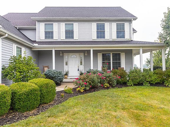 Custom home on 1.45 acres! Attention to detail w/sun filled rooms, outstanding kitchen w/granite tops, birch cabinets&lots of 3/4'' hdwd floors! 6 panel doors+deluxe owner's ste w/whirlpool tub! Relax on the large front porch! Enjoy the walkout LL+expansive yard! Kitchen+family room are open! Gas log fireplace! All bedrms are spacious + 1 has a huge bonus rm! LL is finished w/ 1/2 bath, large office, rec rm & a walkout paver patio&big yard! Eat in area steps out to stampcrete patio w/huge ''flagstone'' stairs leading to LL patio! Enjoy the sunsets! Most light fixtures have been updated & look great! This home is impeccable & has a 3 car garage! Home is tucked into the neighborhood. 8 miles to Rte 33 & Brew Dog! 1 mile to Slate Run Metro Park! Quality hm in desirable neighborhood!See A2A Re