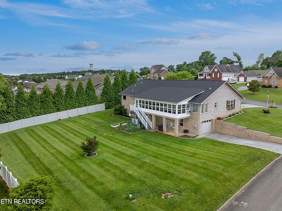 Check out this immaculately maintained 4 bedroom/3 full bath all brick Ranch/ Basement home that sits on a corner lot in an established subdivision. This home has amazing views of the Smoky Mountains from the oversized 4 Season Sunroom where you can enjoy your morning coffee, spend quiet times or meals. There has been many updates such as a newly remodeled kitchen, pantry area and laundry, new roof and custom trim and touches throughout this home. Also, a private suite in the basement area you can access from the 3rd car garage or private entrance. There is so much extra unfinished room downstairs that can be utilized for storage or expanding the living space in the basement.