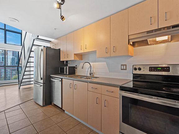 A loft in a building full of lofts. Sleep Upstairs, Hang out downstairs w/ over-height ceilings, tons of natural light, new floors, new paint & all in over 770 sq/ft of open living space. Welcome to the Space building right in the middle of it all! This recently updated unit has quartz counters, laminate flooring, stainless appliances, tons of storage space & ridiculously high ceilings perfect for people of all shapes and sizes. The upper floor boasts a generous sized bedroom, walk in closet & Den. A central location with Vancouvers finest amenities right at your door step, Emery Barnes Park & Skytrain just a few minutes away. Here is your opportunity to enjoy a Space that is not so typical in a city that needs more of just that. 1 Parking, Pets & Rentals allowed (Minumum 30 days).