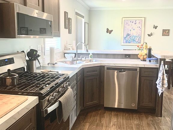 All the upgrades in this LIKE NEW home in the attractive River Run Estates community. Built in 2022, with many upgrades: Garage, gutters/leaf guards, upgraded low threshold walk-in shower, beautiful landscaping, drinking water system, & more. Great place to call home along the Portage River, & very LOW MAINTENANCE. Nice layout with 3 Beds/2 Full Baths. The kitchen is open to the dining & living room areas & has a huge corner pantry. Laundry room/mudroom off the kitchen. No real estate being sold with the home. Monthly lot rent $405 includes: Trash pickup & road maint. Buyers must submit: 1: proof of ability to purchase with cash &/or a lender's pre-approval for manufactured home, & 2: fill out application for lot lease & gain owner approval prior to offer. Audio/video surveillance in use.