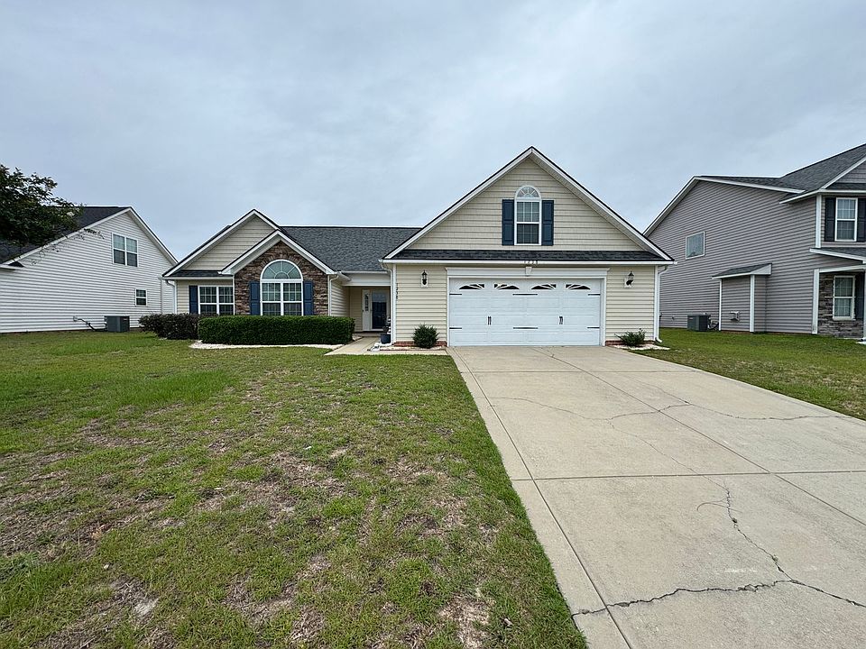 Welcome to this spacious 4 bedroom, 2 bathroom home located in Fayetteville, NC. This home features a separate shower and tub in the master bath, perfect for relaxing after a long day. The eat-in kitchen and formal dining room provide ample space for entertaining guests or enjoying family meals. Cozy up by the fireplace in the great room or retreat to the finished bonus room for some extra space. The covered patio in the rear is ideal for outdoor gatherings or simply enjoying the fresh air. The dual vanity in the master bath adds convenience. A huge garage connects with oversized mud room/laundry room. Don't miss out on the opportunity to make this house your home! No smoking, pets negotiable. $250 for the first pet, $150 for each additional. SHED IS NOT FOR TENANT USE.