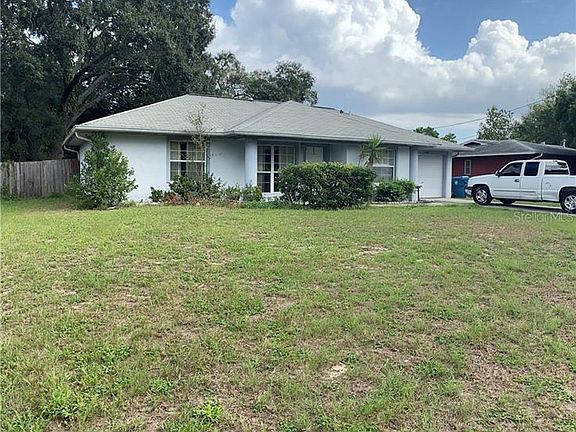 Three bedroom, two bath home conveniently located in Spring Hill. This home features a HUGE 660 sq ft open porch that is an excellent layout for entertaining. Big lot with a fenced in yard and no rear neighbors! The one car garage is oversized with a laundry area. This home is in a quiet neighborhood, but very close to US 19 shopping, restaurants, Walmart, Penneys, and PHSC. Sold as-is for seller's convenience. Washer, dryer and refrigerator do NOT convey. Room dimensions are approximate, buyer is responsible to verify all measurements.