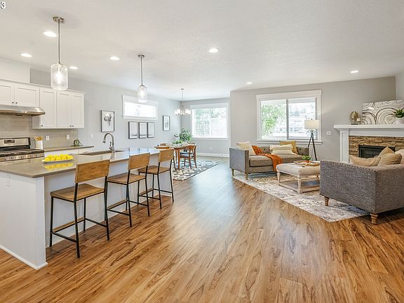 Easy living in this one level home in desirable Pacific Crossing in Forest Grove. Beautiful, quiet and well-kept neighborhood with a community pool, playground and more. The heart of this home is the great room with a large, open kitchen featuring quartz countertops, tile backsplash, eat-at island, stainless appliances, LVT flooring and walk-in pantry. A gas fireplace warms the living space and there is ample room for entertaining. The covered deck just off of the dining/living area has room for the BBQ (gas hookup already there), dining table and relaxing with views of the coast range. Large primary suite with walk in shower, double vanity, toilet room and spacious closet. Laundry room with utility sink and cabinets, 2 additional bedrooms and another bathroom complete this 1-level home. Additional features include: central vacuum system, tankless water heater, double electric car chargers in the garage and many more upgrades. Low HOA covers lawn and yard maintenance and all community amenities.